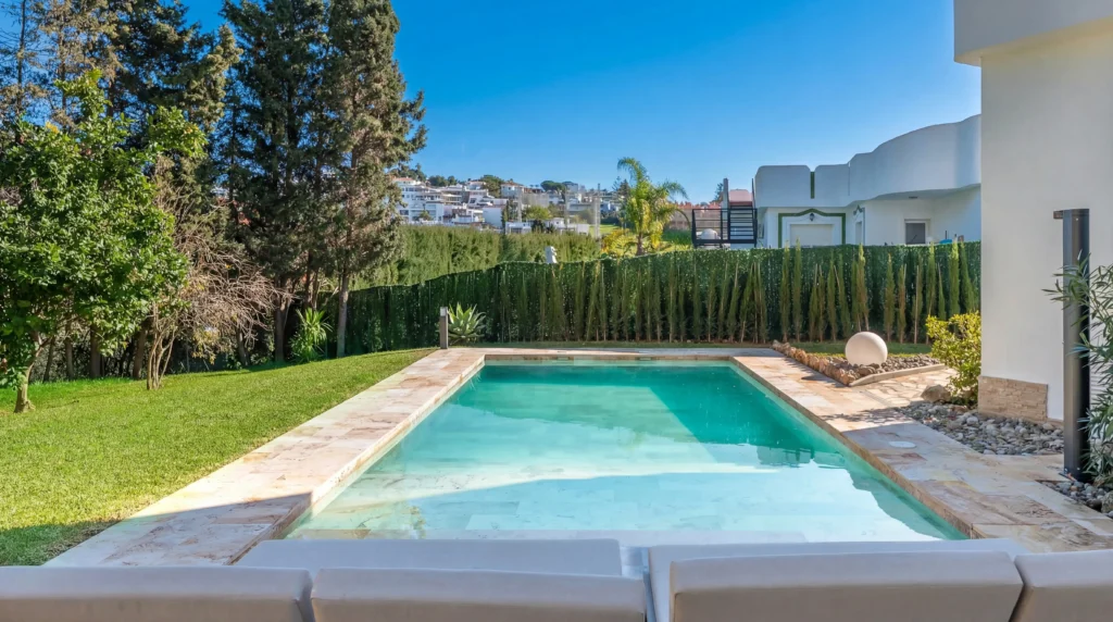 Recently renovated, bright villa with private garden, swimming pool, golf view and 4 minutes from the beach. Marbella,