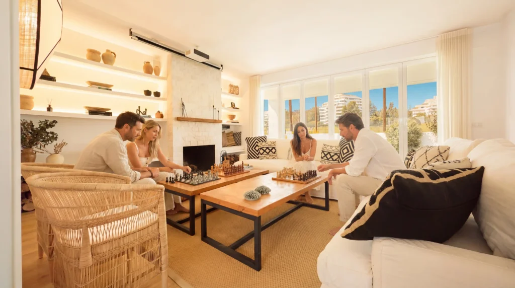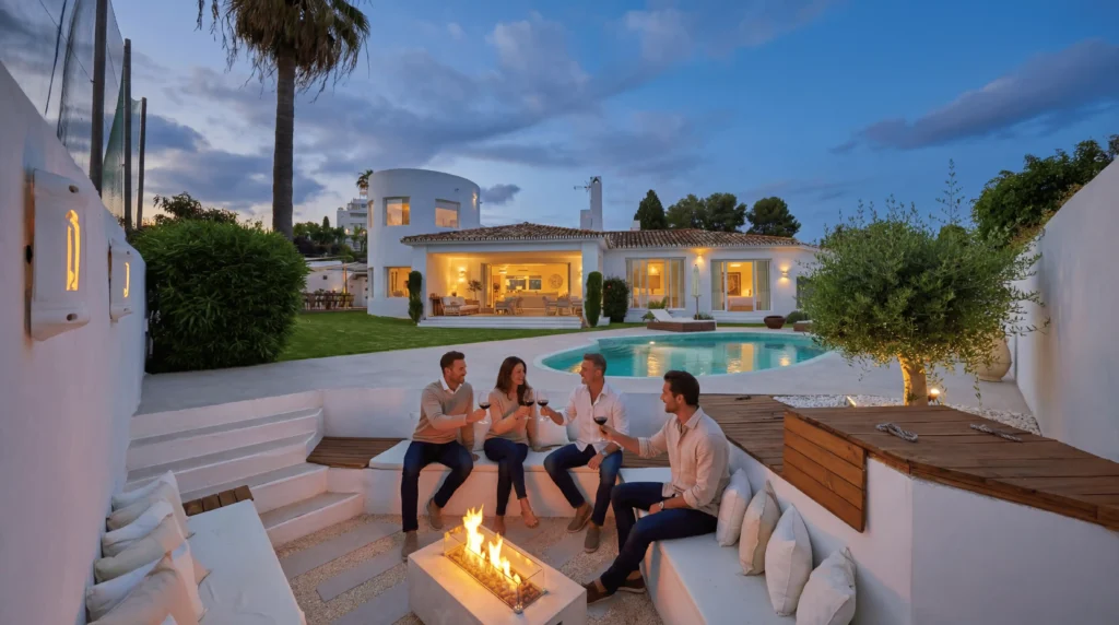 Ibiza-inspired designer villa in guadalmina alta with private pool, sauna, fire pit lounge, and facing Guadalmina golf equipped for biohacking and deep relaxation. Guadalmina, Costa del Sol